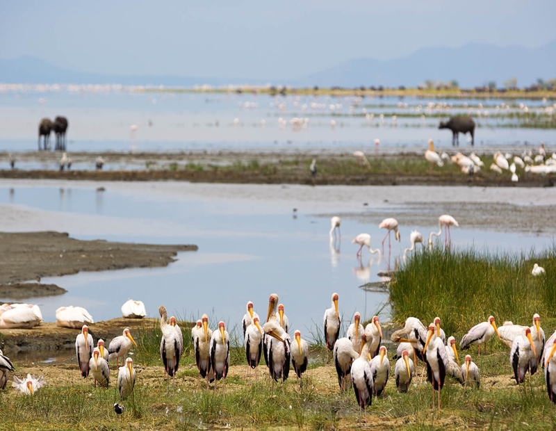 • Seasonal flamingos and dramatic lakeshore landscapes
